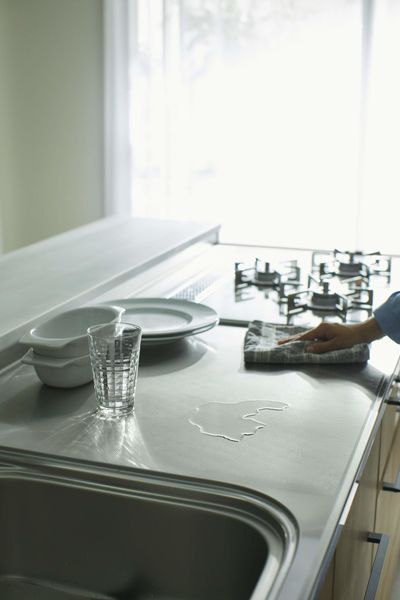 Kết hợp và phối hợp màu sắc và kết cấu của mặt bếp của bạn : Vẻ đẹp kim loại bóng bẩy là một trong những điểm hấp dẫn của nhà bếp bằng thép không gỉ, nhưng đồng thời, nó có thể khó hòa hợp với bầu không khí ấm áp của phòng khách/phòng ăn. Đặc biệt, mặt bàn bếp trong bếp quầy bếp dễ dàng nhìn thấy từ phòng khách, vì vậy chỉ cần giảm độ bóng của bộ phận này có thể làm dịu đi ấn tượng cứng nhắc.