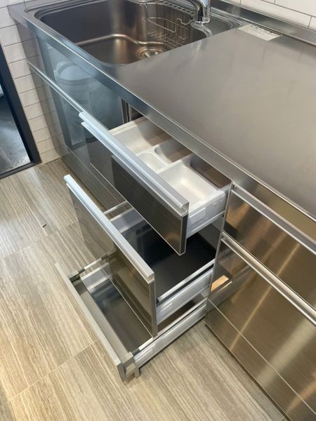 Mặt bàn thép phủ lớp e-coat chống trầy xước, giúp bạn dễ dàng lau chùi, đánh bay vết bẩn cứng đầu chỉ với một chiếc khăn ẩm – tiết kiệm thời gian và công sức. Ngoài ra còn có các loại mặt đá, mặt gốm ceramic đều được nhập từ Nhật Bản.