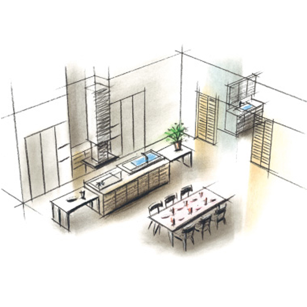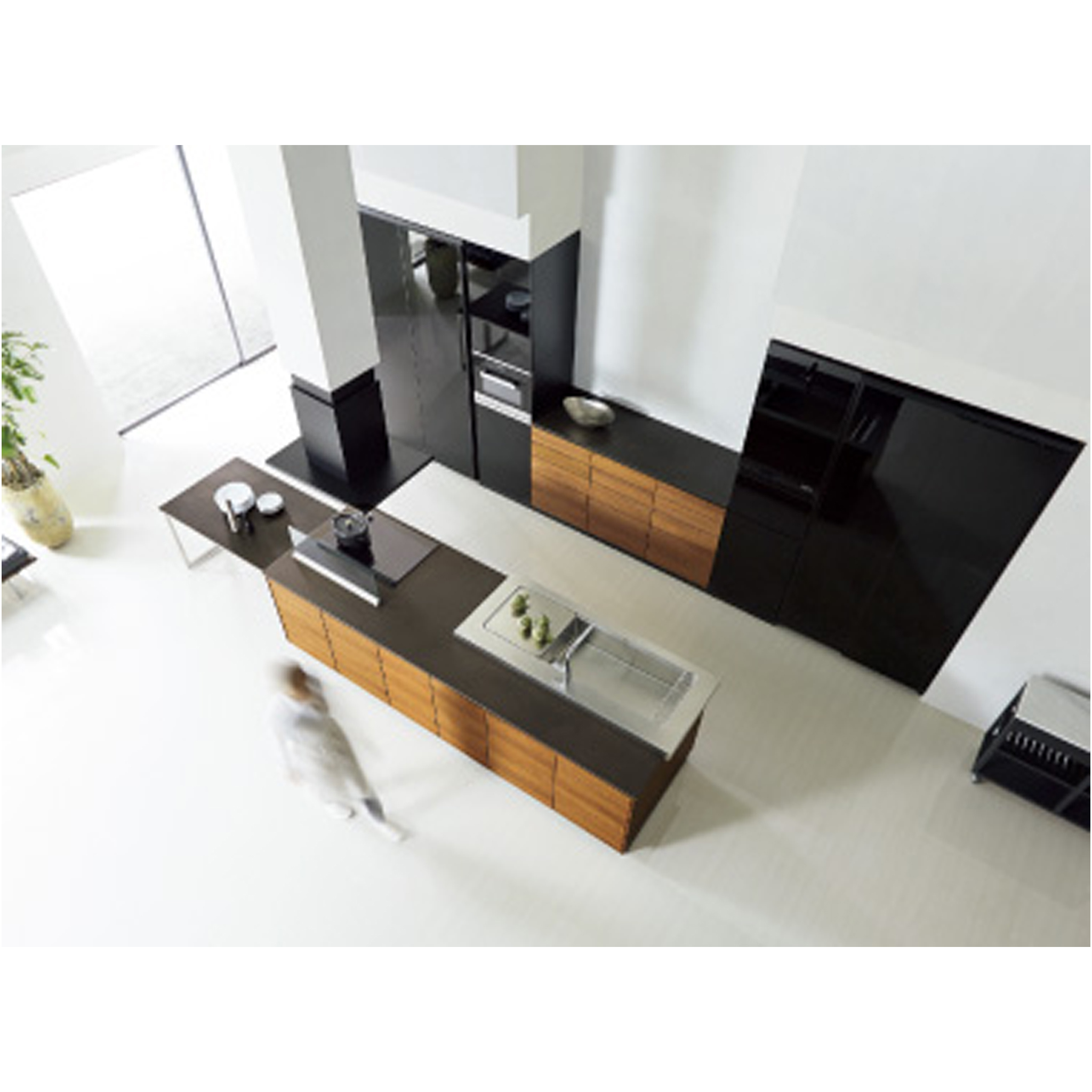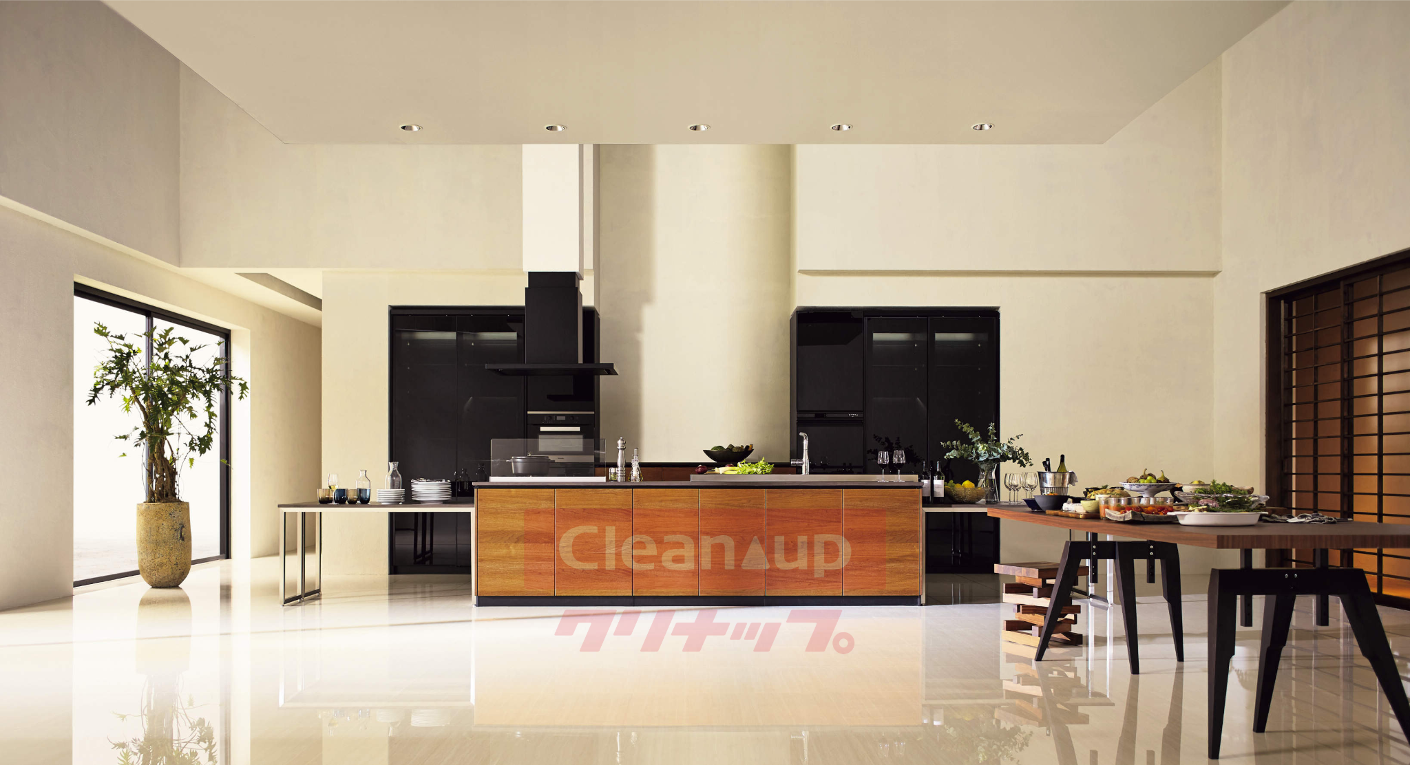 Một trong những điểm nổi bật của hệ thống tủ bếp Cleanup chính là cửa veneer gỗ tự nhiên. Sử dụng loại cửa này sẽ giúp bạn tận hưởng một kết cấu nhẹ nhàng, hài hòa với đồ nội thất trong phòng khách của bạn. Không chỉ vậy, không gian làm việc cũng được cung cấp trong kho lưu trữ trên tường, và bộ đếm liên kết gắn liền với nhà bếp có thể được sử dụng cho nhiều mục đích khác nhau.